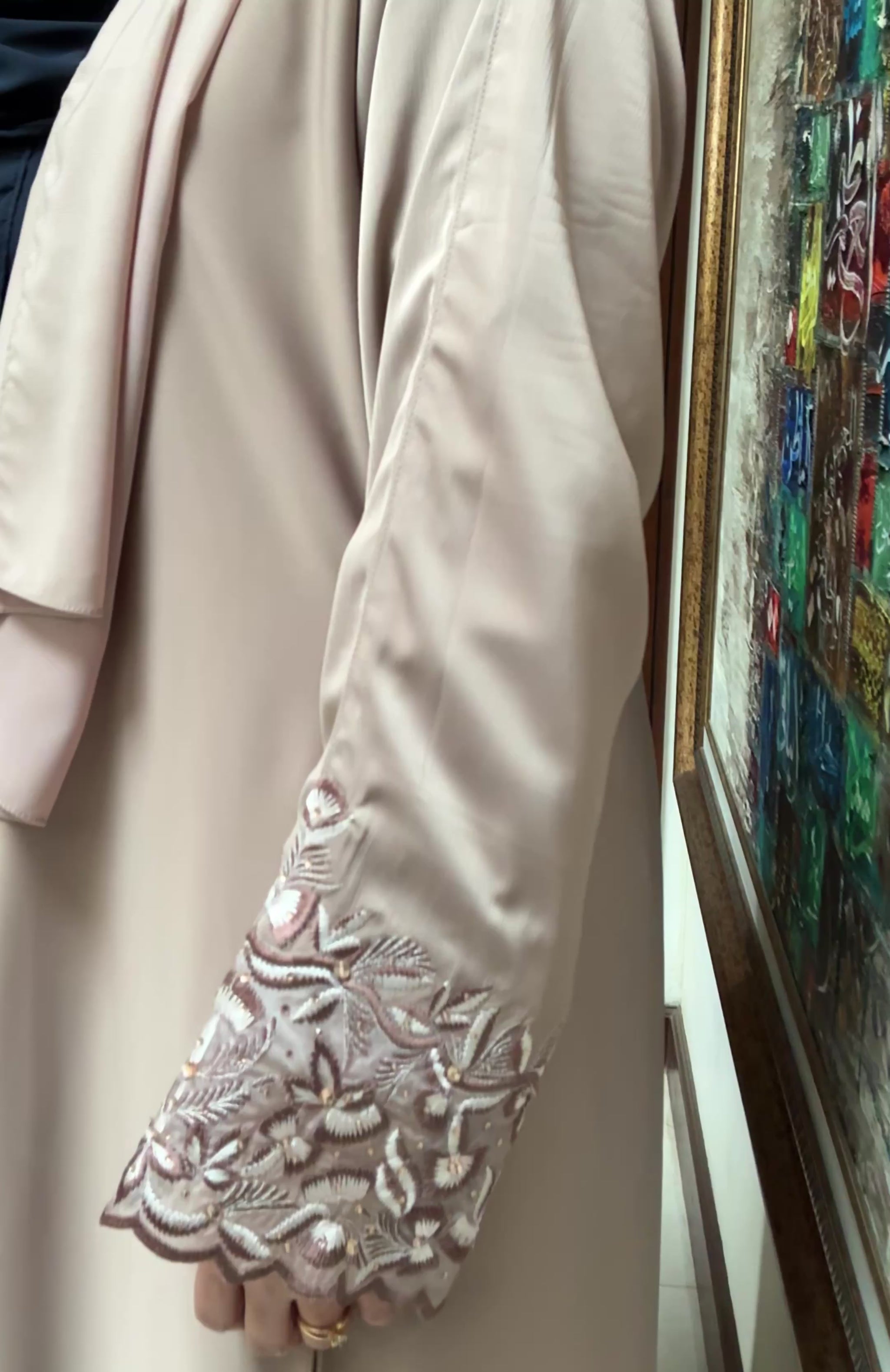 This Emirati Style abaya made in premium crinkle nadah looks absolutely ravishing with embroidery and diamantés work on the sleeves. It Comes with a matching sheila. This garment is designed to offer a sophisticated aesthetic while maintaining comfort and ease of wear. The premium fabric composition ensures durability, making it suitable for various occasions.