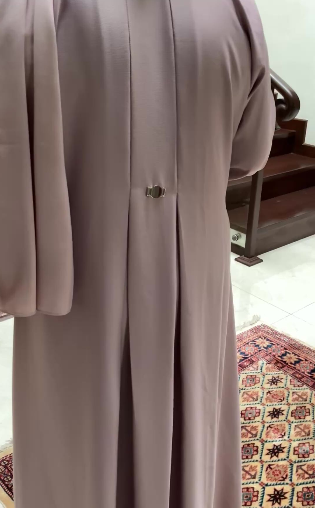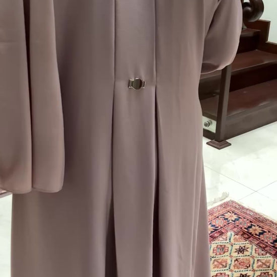 The Royale Abaya in Rose Blush is complemented by premium crinkle nadah fabric, ensuring durability and elegance. The matching sheila enhances its cohesive look, while the bold gold accessory adds a touch of luxury, making it suitable for both casual and formal occasions.