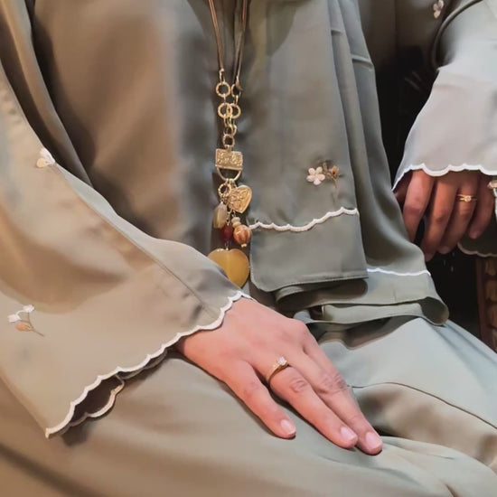 This green floral Abaya features intricate Delicate embroidery. Crafted from premium Nadah fabric. It also includes a coordinating embroidered stole for a complete look.